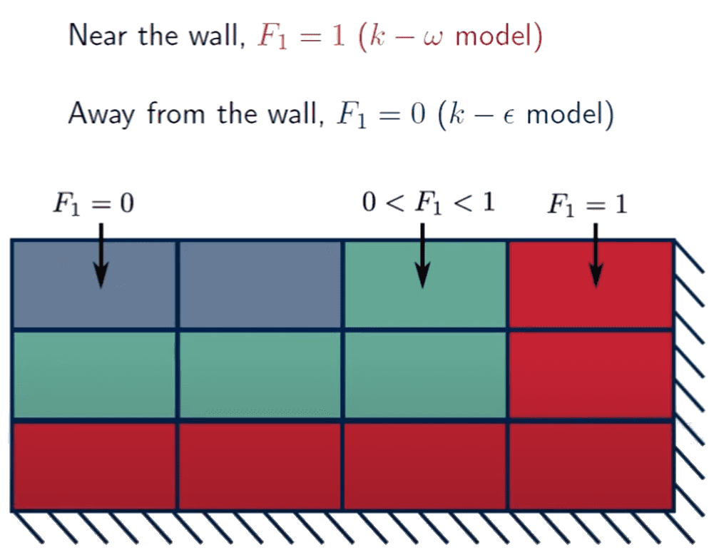 The k-epsilon model tends to show great results in the free stream region and the k-omega model has a good accuracy in the boundary layer region close to the wall. We can combine the advantages of these two turbulence models using a blending function.