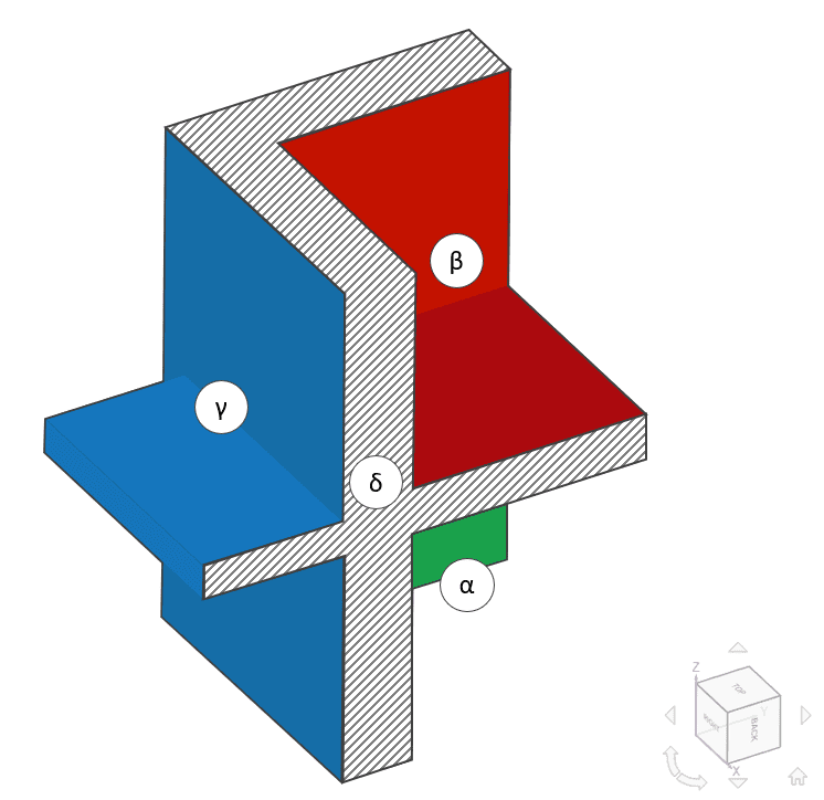 For the application of boundary conditions and measurement of result quantities, the surfaces of the structure are classified according to the spaces they belong to: