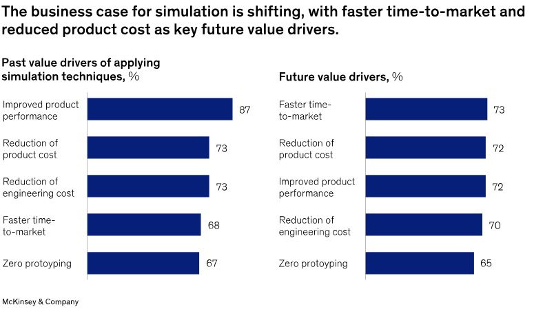 Traditionally, physics-based simulation has been used late in the design cycle to validate designs and potentially reduce the reliance on physical prototyping. However, in a recent report by McKinsey, they highlight from their surveys of R&D leaders in engineering that the business case for using engineering simulation is moving more towards faster-time-to-market and reduced product cost.