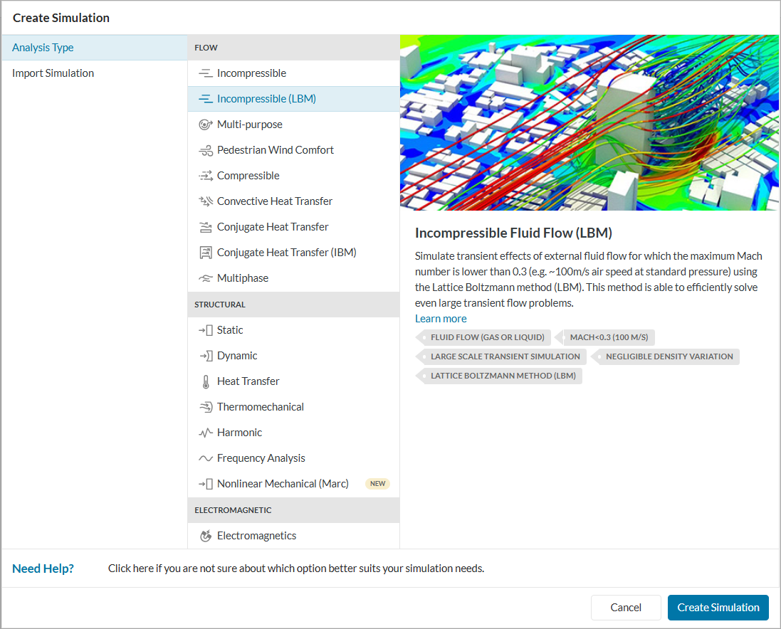 Incompressible (LBM) is a specialized analysis type restricted to users with a paid plan. For more details please visit our product & pricing page or contact sales.