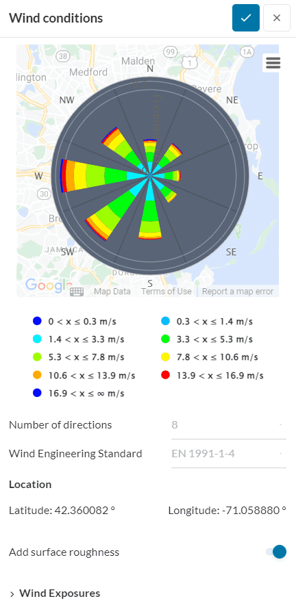 All of this computational power would be useless if it was not easy for the PWC professional to set up and run. Thankfully, the PWC workflow is tailored and guided for non-expert users, with a simple guided process and advancements such as a built-in wind calculator leveraging data from meteoblue. If you are a more advanced user, the UX does provide access to additional settings and controls to customize your simulation.
