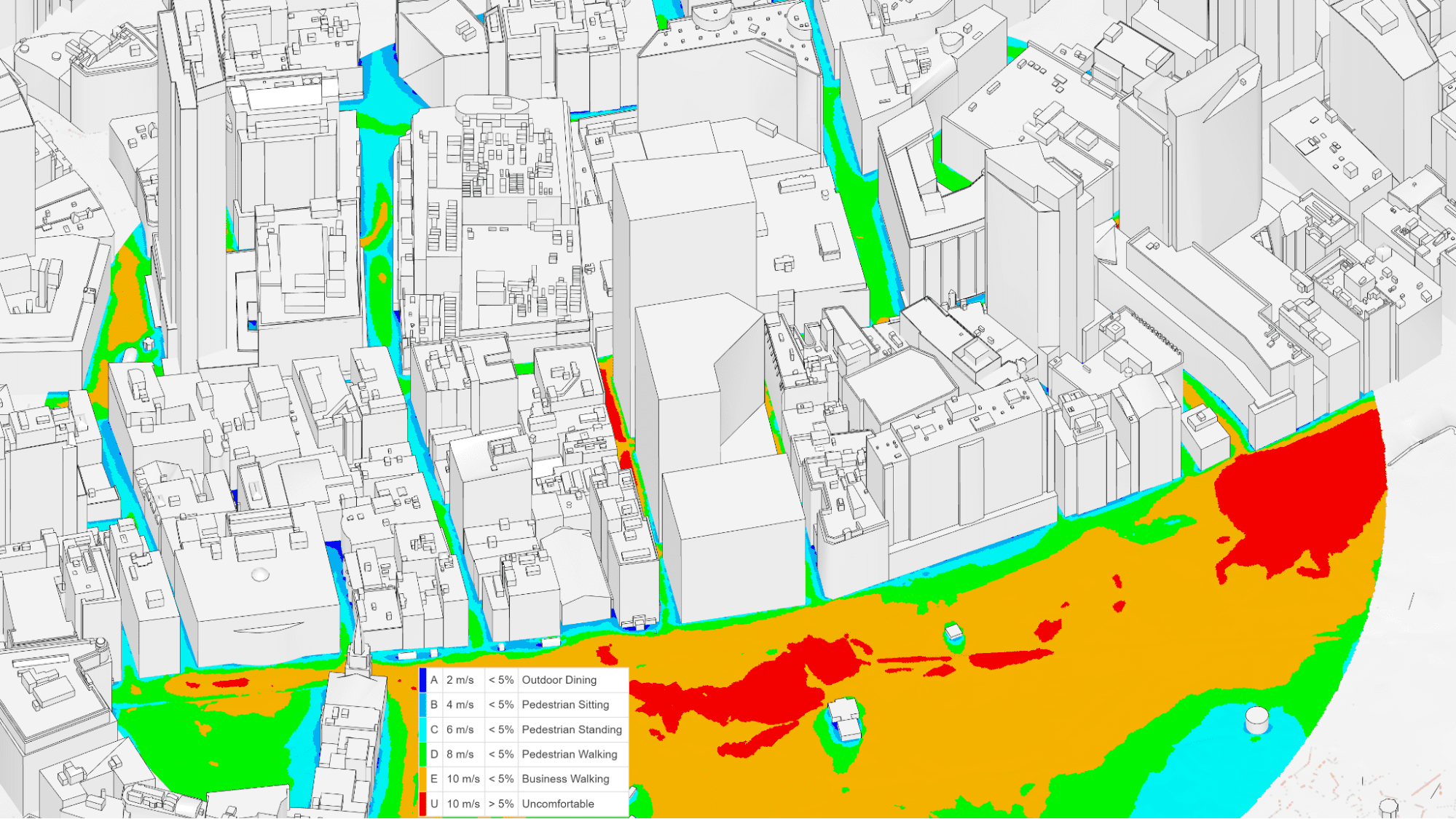 This wind data should be superimposed with the areas where certain activities will be performed (eating, standing, walking, shopping, etc.). The simulation results should then be interrogated to inform what is the root cause of the local wind effects. The major drivers of urban wind acceleration are: