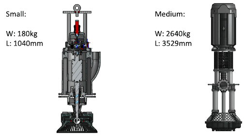 The first pump investigated by Hazleton was a 180 kg, 5.5 kW submersible, shown in Figure (1a).