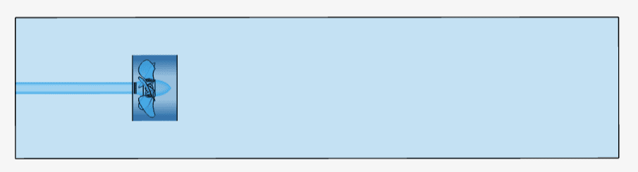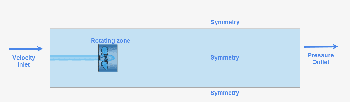 The propeller diameter is 0.25 \(m\), shaft diameter is 0.05 \(m\). The propeller blades are placed 0.57 \(m\) from the inlet.
