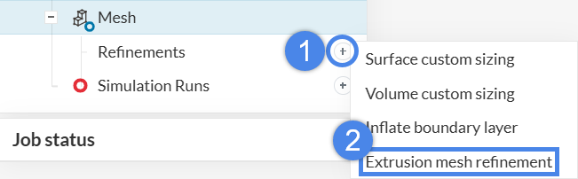 Mesh refinements allow control of the local element size on selected faces and volumes. They are primarily used to optimize computational resources: instead of increasing fineness globally, apply refinements locally to limit the impact on cell count. In addition, Extrusion mesh refinements can be used to improve the mesh in thin sections, which can otherwise cause distortions in non-organized meshes.