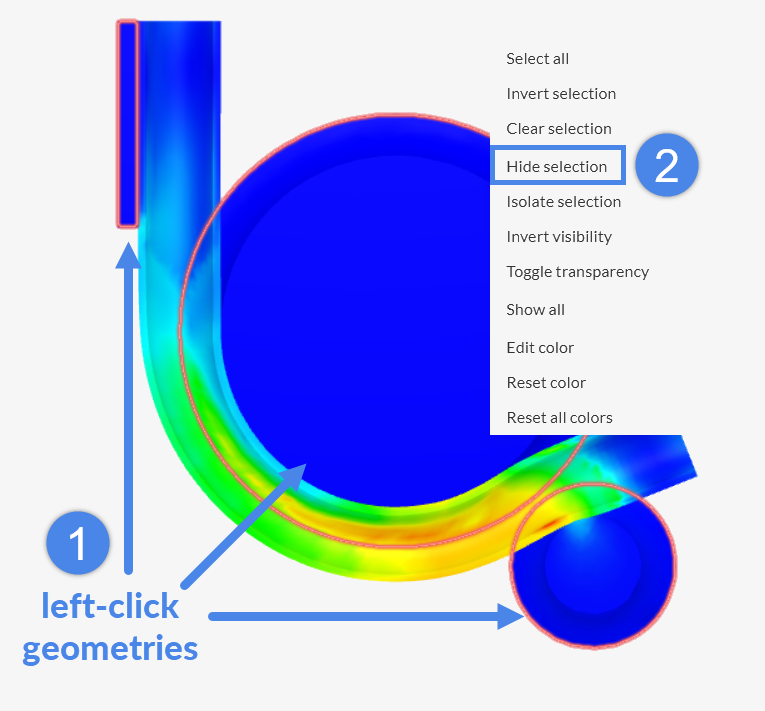 To better visualize stress in the bent pipe, hide all other parts as follows: