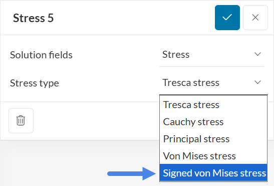 First, create a Stress field and change the stress type to Signed von Mises stress.