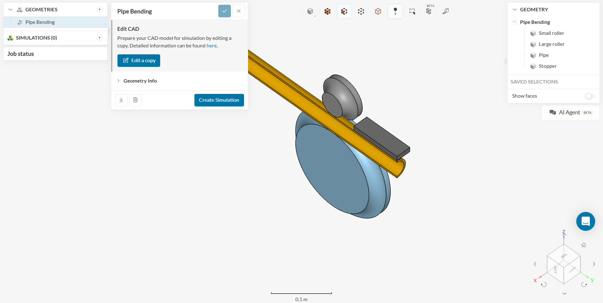 Start by clicking the button below. This copies the tutorial project, including the aluminium pipe geometry, into your own workbench.